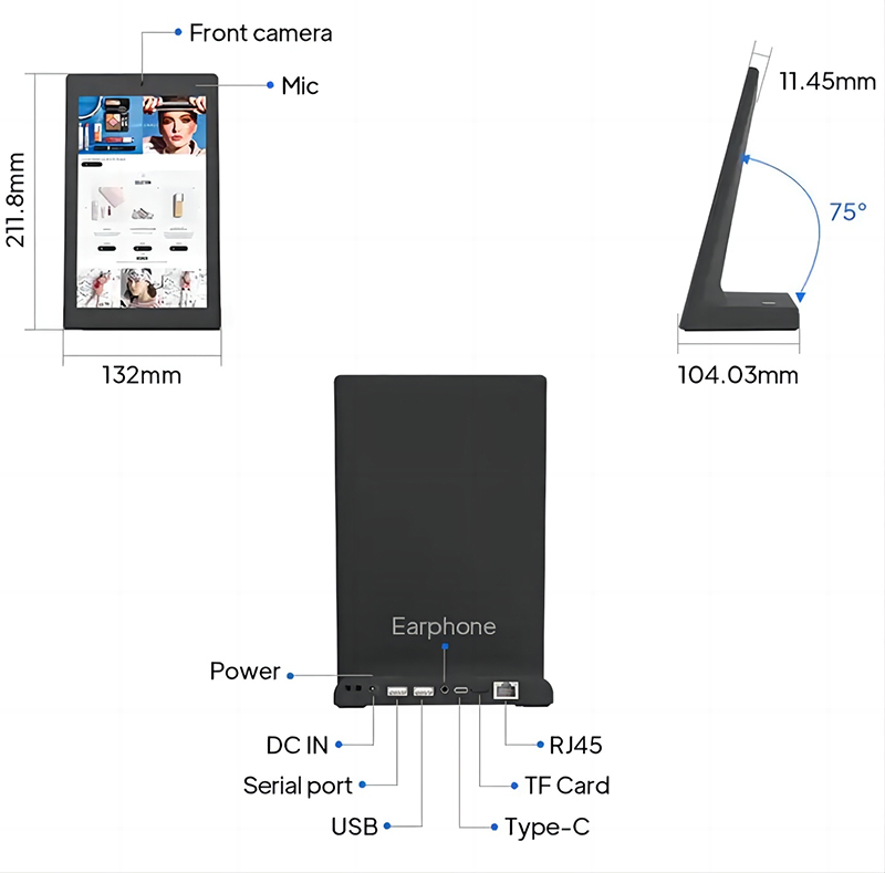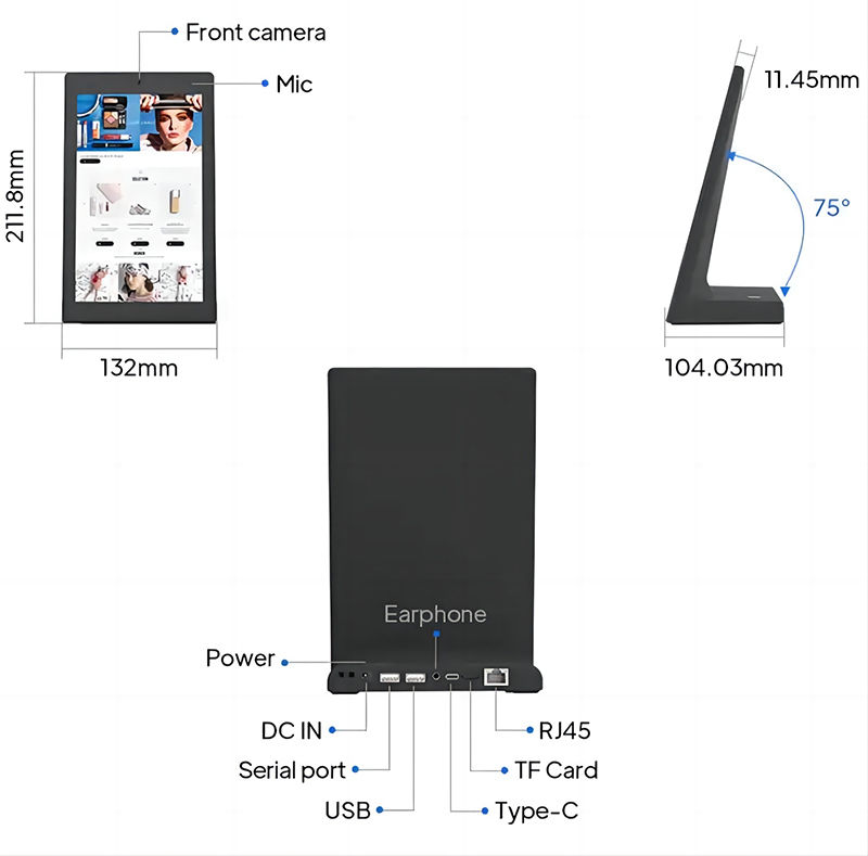 Αυτό το Android tablet στυλ κιόσκου έχει σχεδιαστεί για να ταιριάζει τέλεια στην υποδοχή, στους πάγκους ξενοδοχείων, στα σημεία ελέγχου, σταθμούς εξυπηρέτησης και στα σημεία επαφής πελατών όπου ο χώρος είναι περιορισμένος αλλά η αλληλεπίδραση είναι συχνή.Η δομή σε σχήμα L παρέχει μια σταθερή και κομψή παρουσία που επιτρέπει στους επισκέπτες να προσεγγίζουν φυσικά την οθόνη και να ολοκληρώνουν τα βήματα ανατροφοδότησης ή εξυπηρέτησης χωρίς τη συμμετοχή του προσωπικούΓια τους ολοκληρωτές και τους διανομείς, η συσκευή αυτή προσφέρει ένα αξιόπιστο βασικό υλικό για συστήματα εξυπηρέτησης πελατών, πλατφόρμες διαχείρισης ουράς επισκεπτών και ελαφρές εφαρμογές αυτοεξυπηρέτησης.